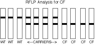 RFLPs are known for CF and so it would be easy to determine if a person were homozygous wild-type (wt), heterozygous “carrier”, or homozygous disease alleles and thus have CF.
